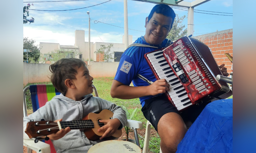 “Para mí tiene un valor afectivo enorme, perteneció a mi papá que tocaba la guitarra pero como él tenía el sueño de que yo toque el acordeón me hizo ese regalo. A su vez, yo le estaba enseñando a mi hijo”.