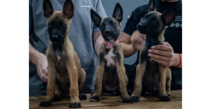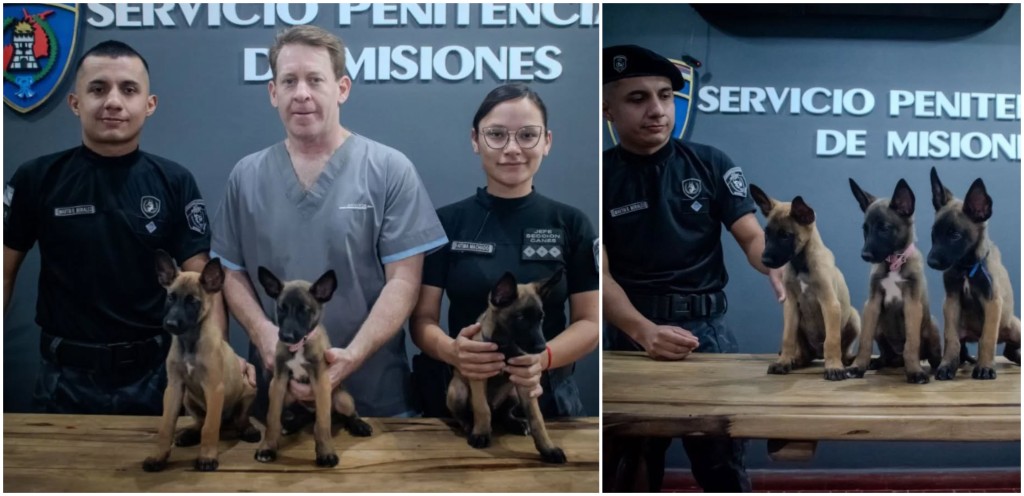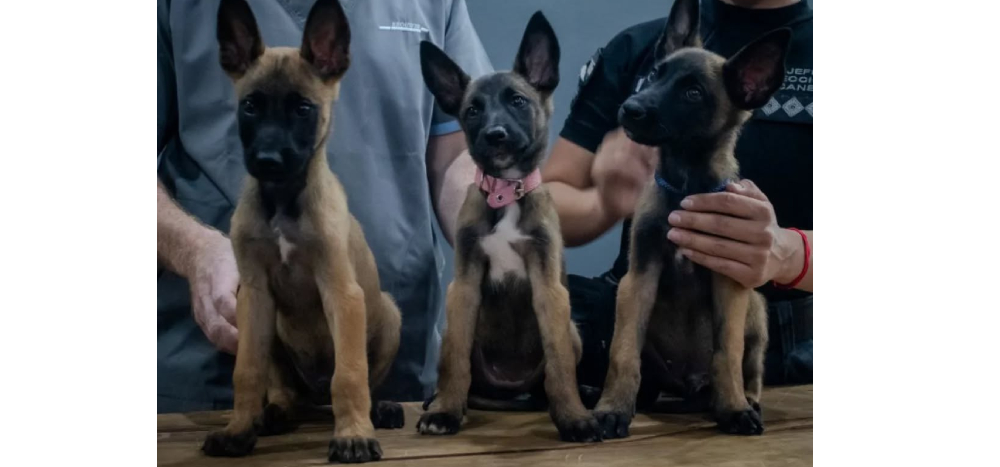 Se trata de tres cachorros de la raza pastor belga malinois que serán entrenados para reforzar al Servicio Penitenciario Provincial en operativos de detección de drogas.