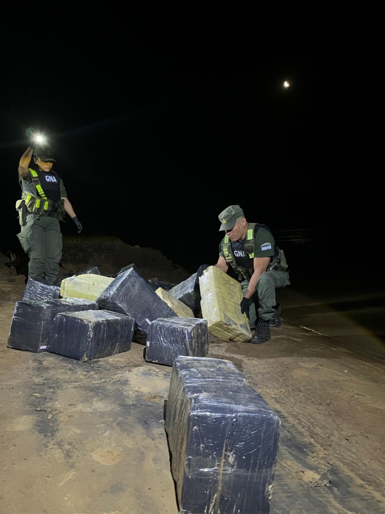 El primer procedimiento se llevó a cabo en las cercanías de Puerto Esperanza, cuando una patrulla de la Sección “Puerto Rico”, perteneciente al Escuadrón 10 “Eldorado”, y de la Unidad de Investigaciones de Delitos Complejos y Procedimientos Judiciales “Eldorado” detectó varios bultos de gran tamaño cerca del límite fronterizo.