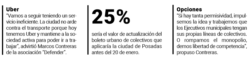 “Es el Ejecutivo municipal de Posadas el que termina solucionando o atendiendo los caprichitos de las empresas, como cuando dicen ´no podemos pasar por ahí porque hay un agujero´; ´no podemos pasar por ahí porque no hay refugio o parada´, cuando es la empresa la que debe proveer de esos refugios”, ejemplificó.