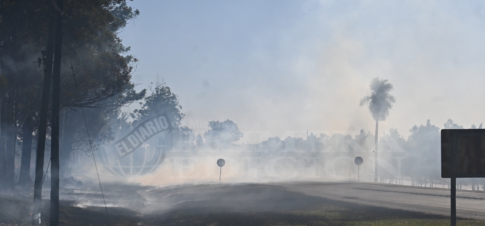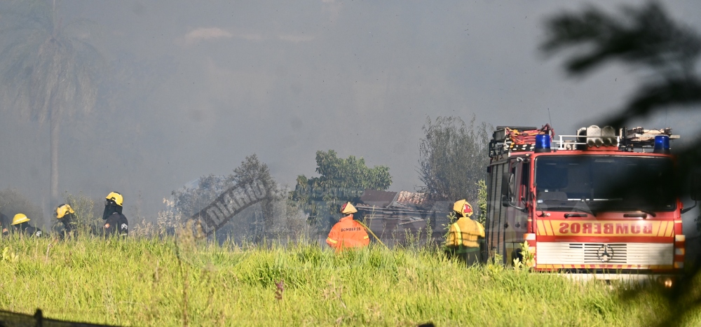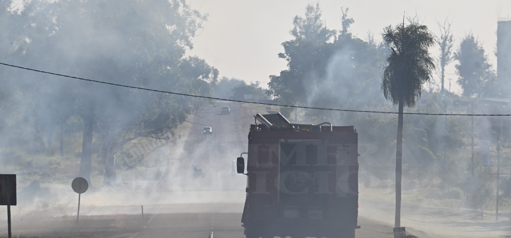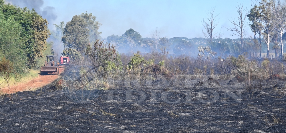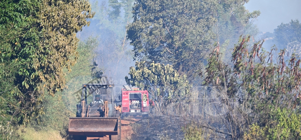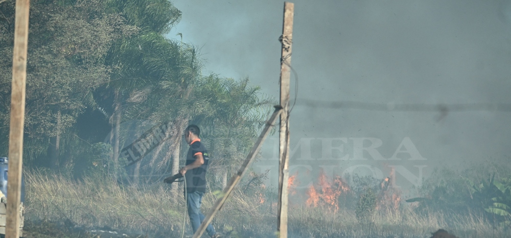 Entre 40 y 60 hectáreas ya se quemaron en Itaembé Guazú a raíz de un incendio de malezas que se propagó rápidamente merced al viento y a la sequía.