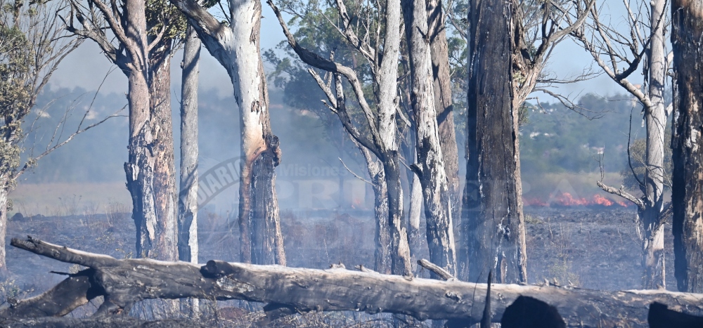 Las llamas avanzaron con todo lo que tenían a su paso, mientras bomberos voluntarios y de la Policía de Misiones como también vecinos redoblaron esfuerzos para evitar que el fuego llegue a las viviendas del lugar.