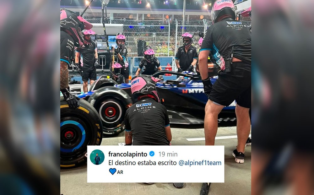 “El destino estaba escrito @AlpineF1Team”, escribió en su cuenta de X el oriundo de Pilar, reconfirmando lo dicho por la categoría y la escudería. Asimismo, Alpine comunicó la novedad diciendo: “VAMOS FRANCO Se incorpora a nosotros con un contrato de varios años. Franco será nuestro piloto de reserva para 2025″.