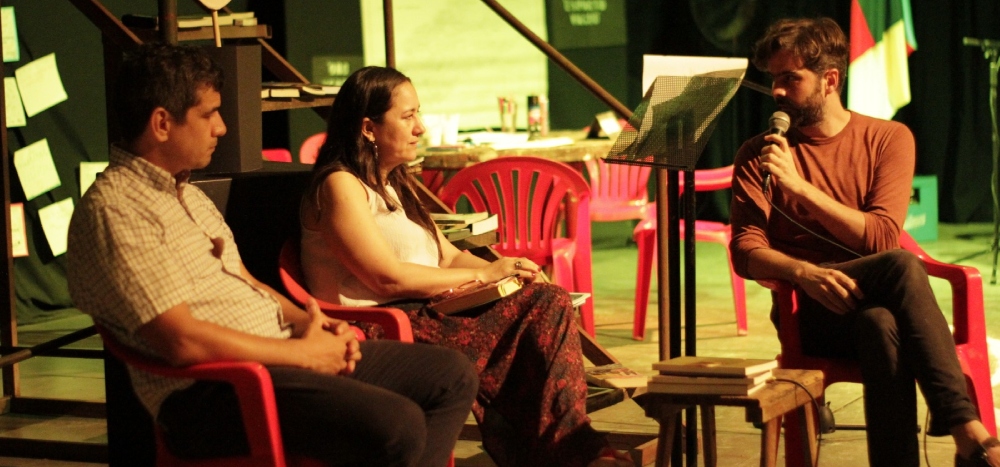 La primera jornada del Foro Terredad, contó con la intervención de Norma Oviedo, historiadora, docente e investigadora de la Universidad Nacional de Misiones (FHyCS-UNaM), secretaria de posgrado y directora del Centro de Estudios Históricos y Culturales (CEHyC) en la misma institución. Norma aportó sus reflexiones críticas en torno a la construcción histórica de Misiones como un espacio de frontera y fue acompañada por una acción performativa del equipo de investigadores del CEHyC. Sus intervenciones articularon claves y disparadores para un, infrecuente, debate grupal en torno a la imaginación política de la “naturaleza” en Misiones.