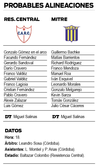 Del otro lado de la vereda estará un Resistencia Central que viene de sacar del camino a dos peces gordos de la categoría: Huracán y Mandiyú de Corrientes. A este último lo ganó en los penales
