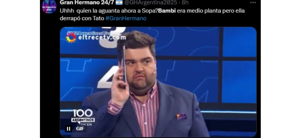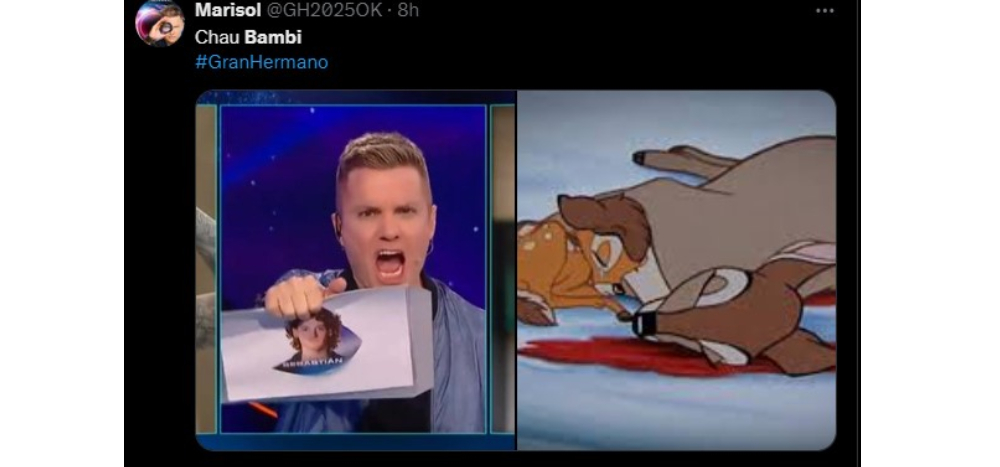 Sebastián Bello, conocido como “Bambi”, fue el nuevo eliminado de Gran Hermano en la última gala de eliminación. En un mano a mano contra Sofía “Sopa” Buscio, Bambi recibió solo el 40.6% de los votos a favor, mientras que Sofía obtuvo el 59.4%. Su salida de la casa más famosa del país generó un gran revuelo en las redes sociales, convirtiéndose rápidamente en tendencia.