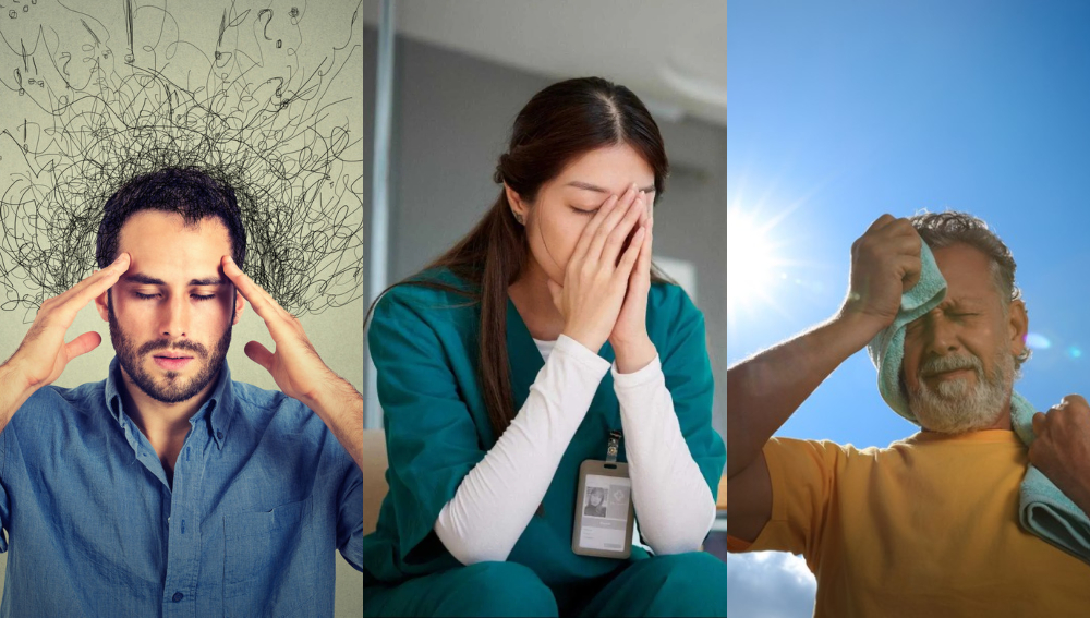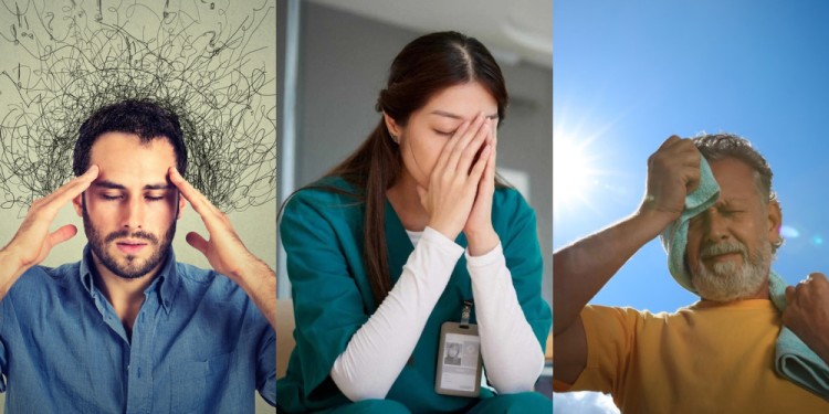 Las principales afecciones derivadas de esta situación incluyen estrés, agotamiento y golpe de calor. Cada una presenta síntomas específicos y niveles de gravedad particulares.