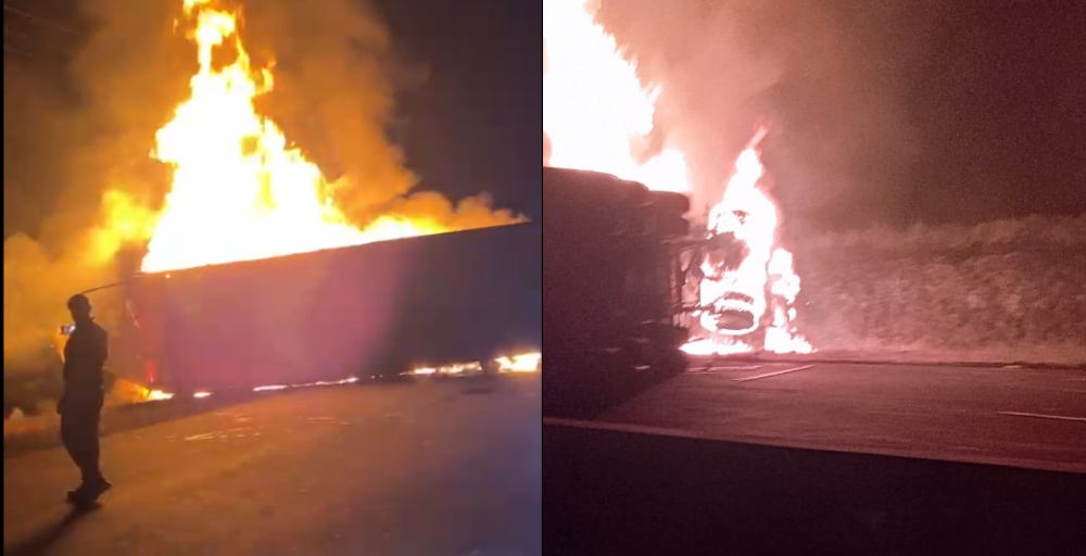 • Impactante vuelco e incendio de un camión en la ruta 105