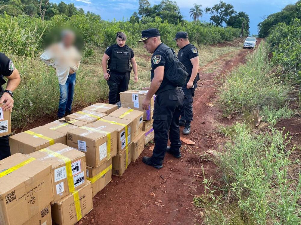 La persecución culminó cuando el rodado ingresó a un camino vecinal y quedó atascado en un sendero de barro, dificultado por las malas condiciones climáticas. Al llegar al lugar, los efectivos encontraron a un hombre de 45 años y una mujer de 34, ambos residentes en Puerto Iguazú, quienes estaban descargando cajas del vehículo.