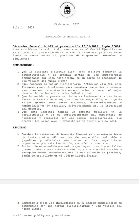 El Tribunal de Disciplina, al igual que a fines de 2022 y 2023, tomó una medida que generó bastante polémica al argumentar en el comunicado oficial que “tienen como objetivo fomentar la competitividad y la armonía dentro de las competencias organizadas por la Asociación, en un marco de promoción de valores del juego limpio”.