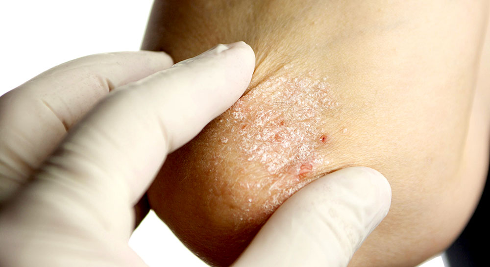 La psoriasis es una enfermedad frecuente de la piel que causa un sarpullido con manchas rojas y escamosas que provocan picazón, sobre todo en codos, cuero cabelludo, rodillas y en el tronco.