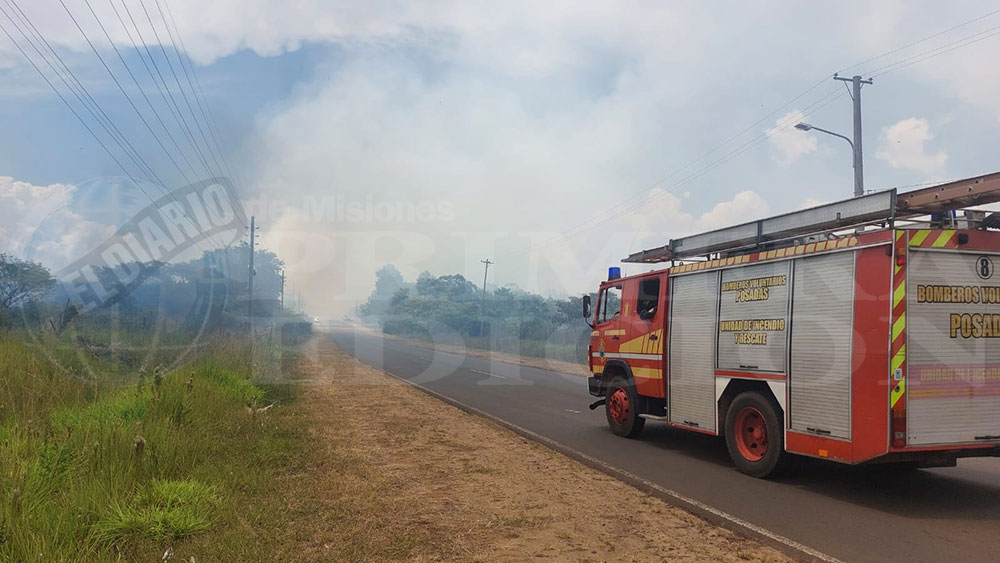 Un incendio de malezas se desató en el mediodía de este viernes en inmediaciones de la ruta que conecta al barrio Cruz del Sur con otras zonas de la ciudad de Posadas. Dotaciones de bomberos trabajan en el lugar para contener las llamas, que avanzan con intensidad debido al viento y la sequedad del ambiente.