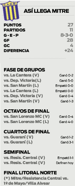 Aquel 1-1 del pasado domingo en el estadio Baltazar Colombo, reducto del equipo chaqueño que mostró deplorables condiciones, dejó mejor parado al combinado de la tierra colorada, pues si bien nadie tiene ventaja, lo cierto es que Mitre definirá ante su gente, en un terreno que se convirtió en una verdadera fortaleza.