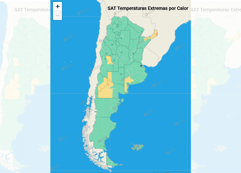 De esta manera, se mantiene el alerta amarillo que regía para algunas partes de las provincias de Buenos Aires, Corrientes, Misiones, Mendoza, La Pampa, Neuquén y Río Negro. En zonas de Misiones, el aviso subía a alerta naranja.