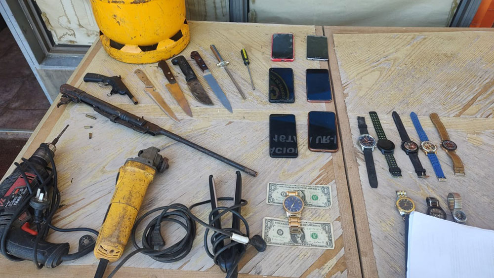 Durante el procedimiento, además de las detenciones, se recuperaron nueve relojes, seis celulares, herramientas y un vehículo Renault, entre otros objetos. También se confiscaron un arma de fuego casera y seis elementos cortopunzantes.