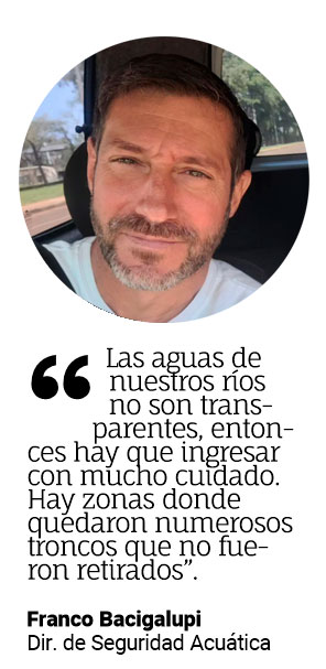“Nosotros siempre recomendamos que si no conocen el lugar, tengan cuidado al ingresar al agua, no solo por las profundidades, las rocas o por los troncos, sino también por la fuerza con la que corre a veces el río. Si bien en Posadas no corre mucho, por ahí vamos a otro lado, no muy lejos, como Ituzaingó y se ve que el río sí corre bastante”, destacó el también profesor de educación física, guardavidas y kayakista.
