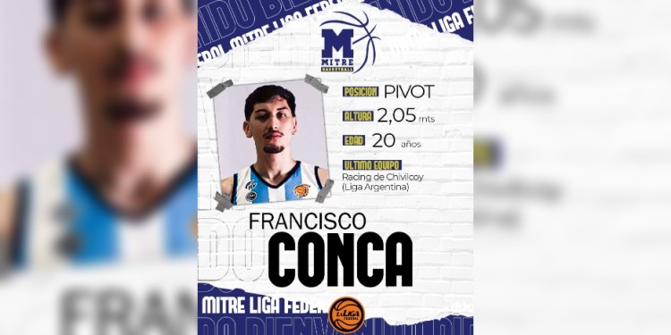 Con la mira puesta en conformar un muy buen plantel para la Liga Federal de básquetbol, Bartolomé Mitre sumó a Francisco Conca, quien con sólo 20 años le dará un gran aporte a la zona pintada del equipo misionero.