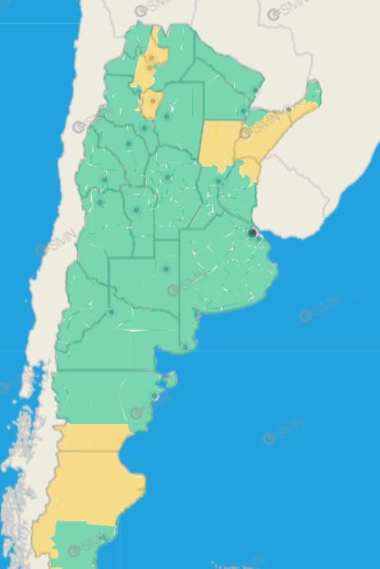 El Servicio Meteorológico Nacional (SMN) emitió en el mediodía de este viernes una alerta amarilla por fuertes tormentas en casi toda la provincia.