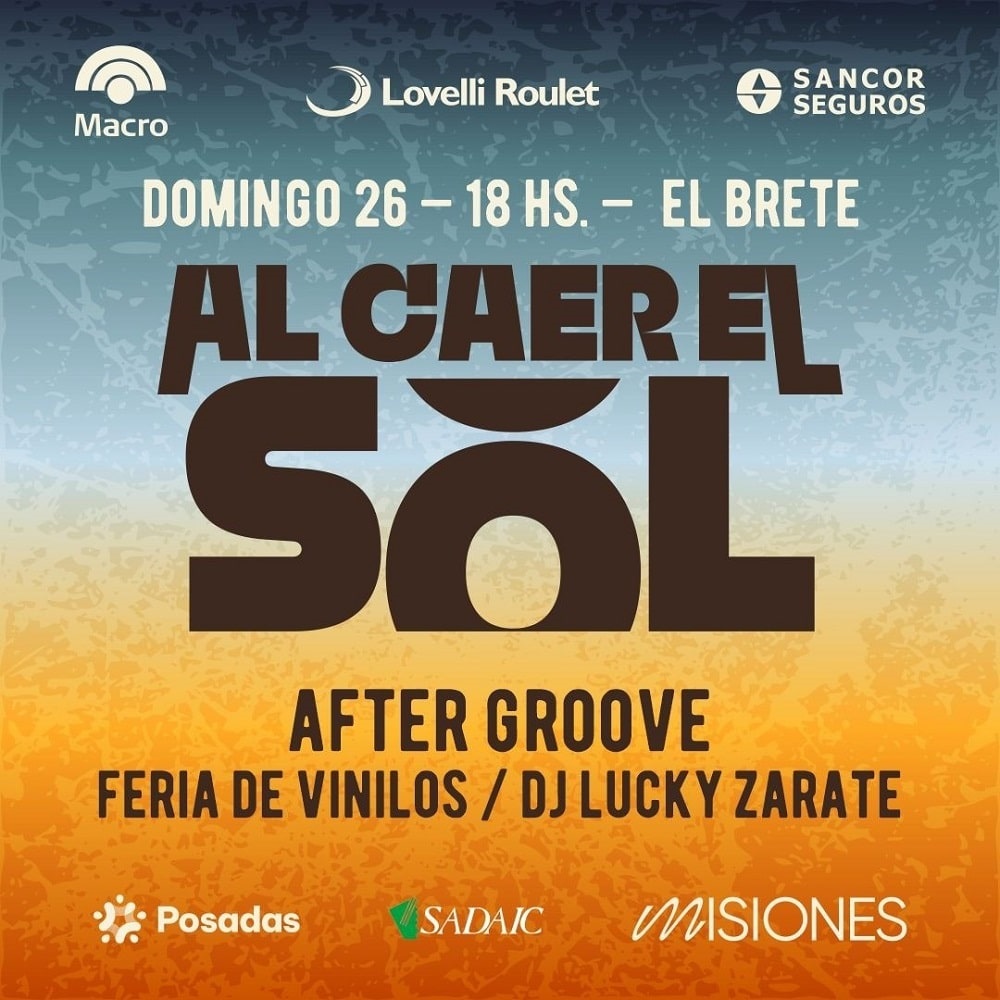 Este domingo, a las 18 horas, el ciclo Al Caer el Sol regresa a El Brete con la presentación de la banda After Groove, acompañada por la voz de Flavia Núñez, que desplegará un repertorio de rock y funk. Mientras que el DJ Lucky Zarate pondrá el ritmo retro como invitado especial de la Feria de Vinilos.
