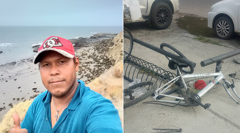 El siniestro vial seguido del ataque a trompadas, se registró el pasado jueves poco antes del mediodía en zona urbana de Caleta Olivia, en Santa Cruz, una de las 19 provincias que Alexis recorrió desde junio del año pasado, con su bicicleta y 80 kilogramos de equipaje.