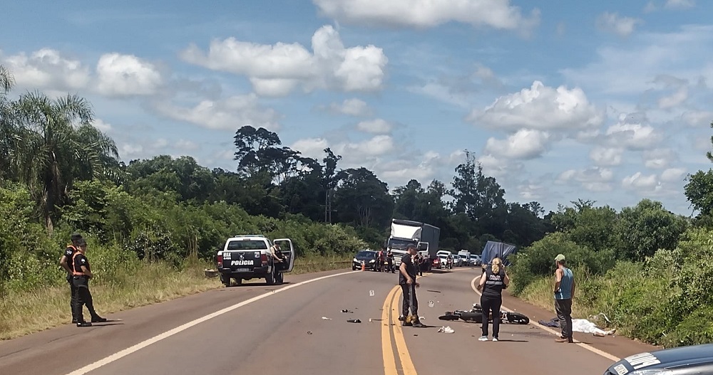 El motociclista, identificado como Rodrigo Miguel Oliveira de 17 años, cayó a la cinta asfáltica y allí fue embestido por un camión Mercedes Benz 608D que también iba en sentido Dos de Mayo-Salto Encantado, se lo encontró de frente y no pudo evitar arrollar al adolescente, que falleció en el acto.