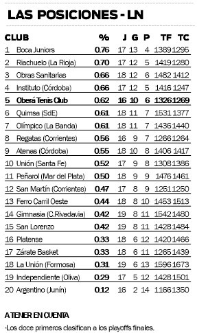 Esa derrota significó para OTC la cuarta caída consecutiva, en el marco de una racha negativa que comenzó en 2025, después de que el team misionero cerrara el 2024 como único puntero. Las derrotas ante Unión, San Lorenzo (79-74), Obras Sanitarias (87-76) y Ferro Carril Oeste (88-81) erosionaron el promedio del Celeste, que ahora marcha quinto en la tabla. Tanto por lo deportivo como por lo anímico, el de hoy será un partido trascendental.