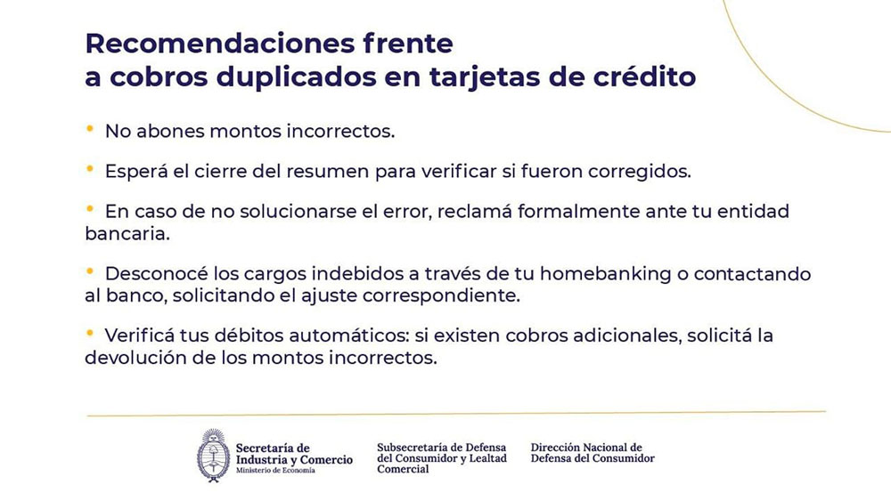 Ante la detección de montos duplicados en resúmenes de tarjetas de crédito, desde el Gobierno aportan estas recomendaciones con los pasos a seguir.