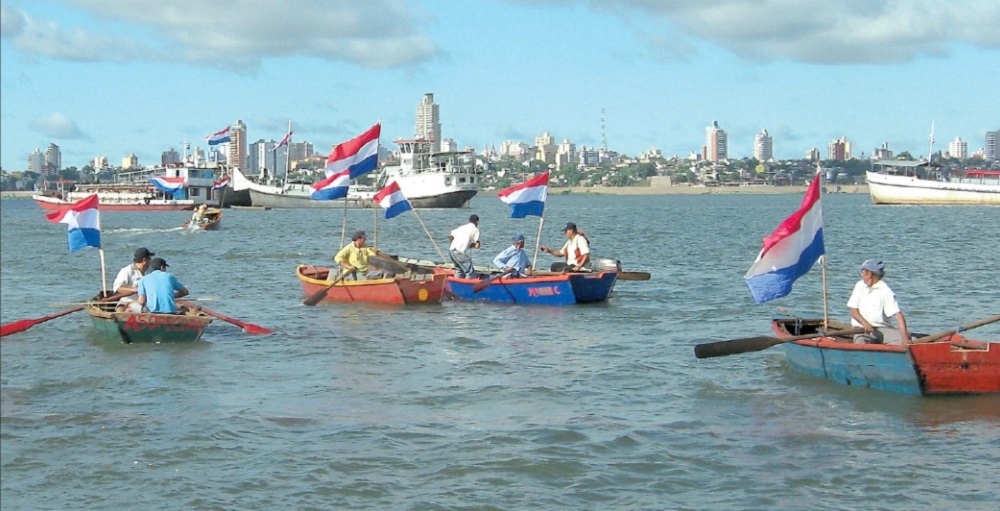 Barcos areneros y canoas, que lucían la bandera tricolor paraguaya, se alinearon frente al puerto local para el llamado “cierre” de la cuenca fluvial. En la costa, en tanto, se acomodó el resto de los manifestantes.