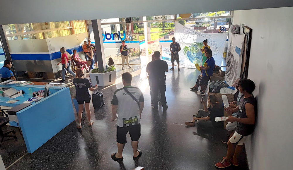 Unos 20 trabajadores cartoneros iniciaron este viernes una protesta en el edificio de la Municipalidad de Puerto Rico con la finalidad de dialogar con el intendente local, Carlos Koch.