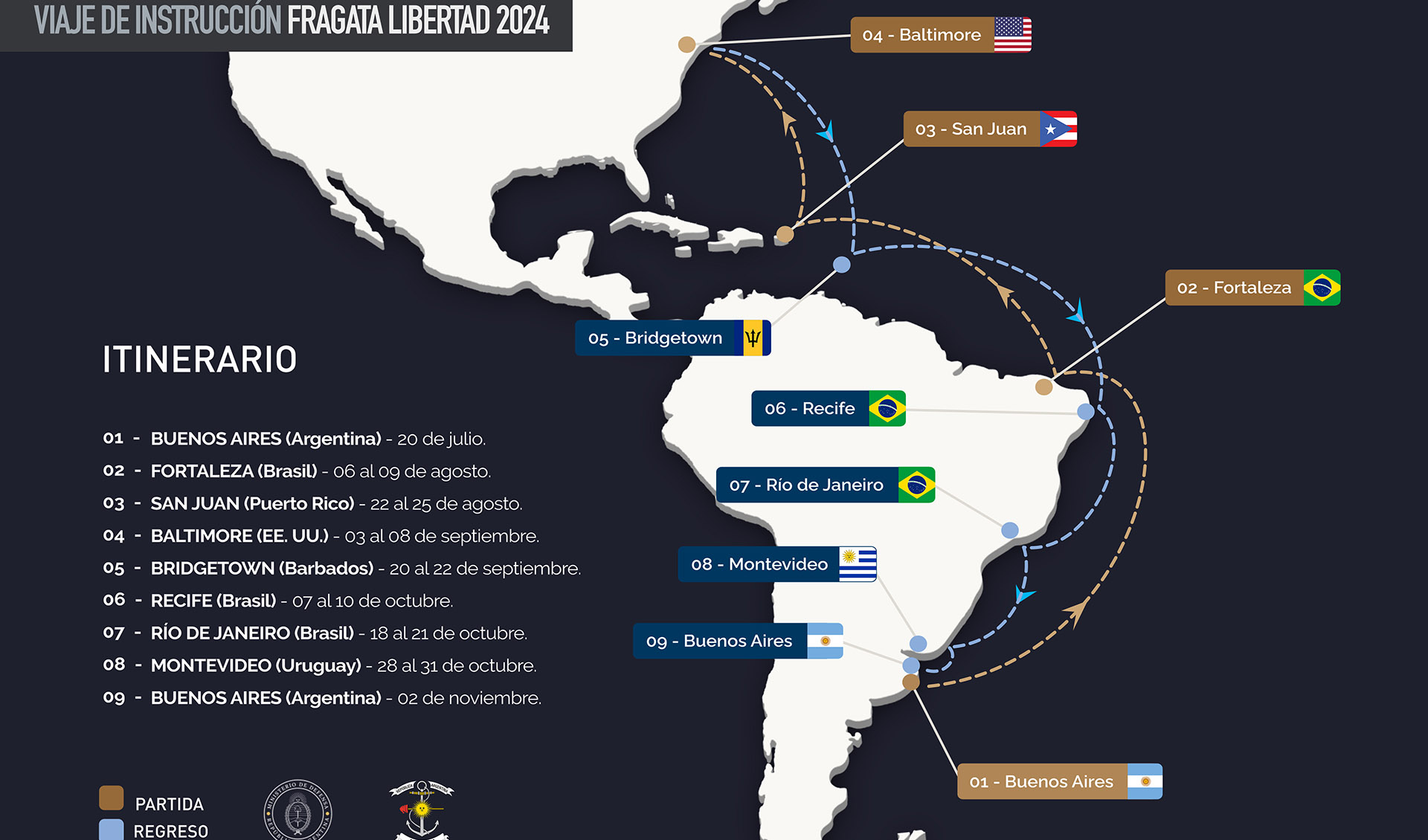Su formación culminó con el emblemático Viaje de Instrucción de la fragata ARA “Libertad”, que en su 52.º recorrido visitó puertos de Brasil, Puerto Rico, Estados Unidos, Barbados y Uruguay. Durante tres meses y medio, Vega navegó junto a casi 300 marinos, recorriendo cerca de 13 mil millas náuticas.