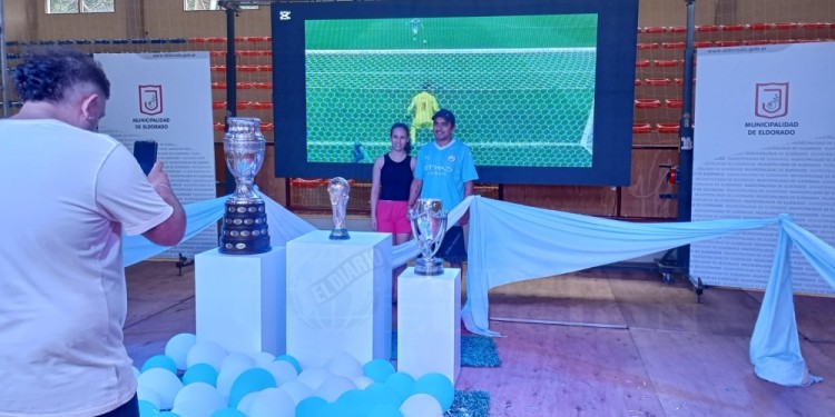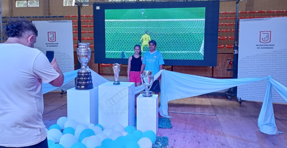 La exhibición de la Copa del Mundo, la Copa América y la Finalíssima convocó a muchas familias de Eldorado y también de las localidades cercanas. Es que nadie se quiere perder la oportunidad de sacarse una foto con los trofeos obtenidos por Messi, el Dibu Martínez y Di María, entre otras figuras del fútbol nacional que tanta gloria le dieron a los argentinos.