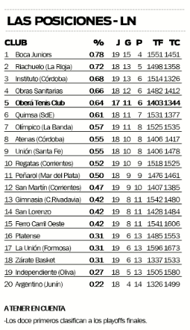 Lo peor ya pasó. Luego de cortar una racha negativa de cuatro derrotas consecutivas y vencer a Zárate Basket (74-72) en Buenos Aires, el Oberá Tenis Club intentará volver a creer y también a crecer en la tabla de posiciones, cuando reciba hoy a Olímpico de La Banda, Santiago del Estero.