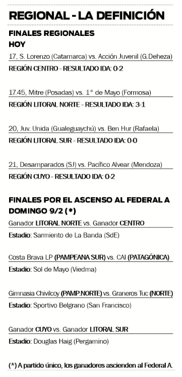 Ese es el camino que le queda a Mitre en esa ilusión de dar el salto, tal como lo informó el Consejo Federal de AFA a última hora del jueves pasado. Y es que en caso de ganar hoy la serie, el Auriazul irá por el ascenso ante el ganador de la Región Centro, que se definirá hoy un rato antes, desde las 17, en Catamarca, donde San Lorenzo de Alem intentará dar vuelta el 0-2 de la ida ante Acción Juvenil de General Deheza, Córdoba.