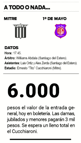 Bartolomé Mitre tendrá esta tarde una verdadera cita con la historia, cuando reciba a 1° de Mayo de Formosa en la revancha de la serie final del Litoral Norte, por el Regional Amateur, en busca de otro paso hacia el sueño de ascender al Torneo Federal A.