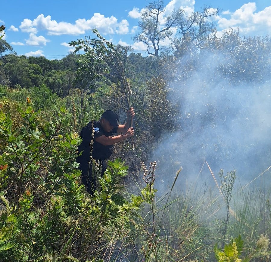 El fuego, que se desató alrededor de las 14:30, demandó la intervención conjunta de personal de la comisaría local, Bomberos Voluntarios de San Javier y bomberos de la zona.