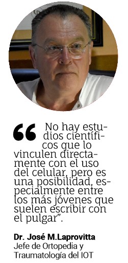 En la actualidad, el uso intensivo de dispositivos electrónicos podría estar relacionado. “No hay estudios científicos que lo vinculen directamente con el uso del celular, pero es una posibilidad, especialmente entre los más jóvenes que suelen escribir con el pulgar”, agregó Laprovitta.