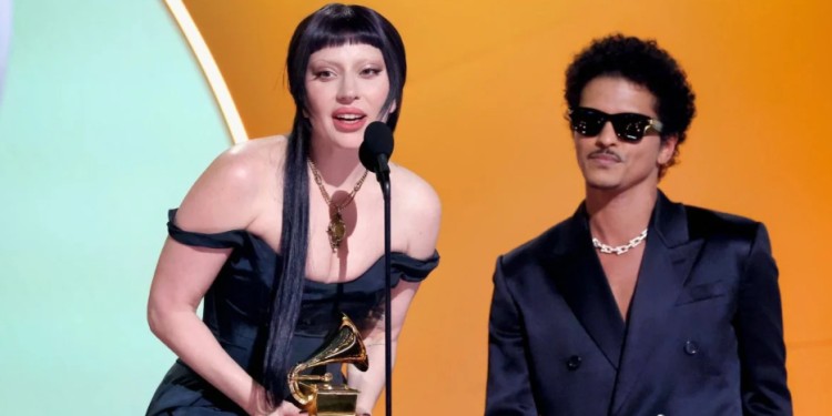 Lady Gaga brilló en los Grammy al ganar el premio a la mejor interpretación pop dúo/grupo junto a Bruno Mars por la canción “Die With a Smile”. En su discurso de aceptación, envió un mensaje contundente en apoyo a la comunidad trans: “Las personas trans no son invisibles. Las personas trans merecen amor”. Sus palabras provocaron una ovación de pie entre los asistentes.