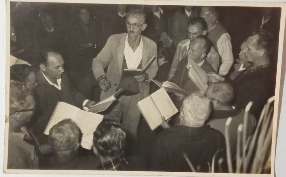 Apasionado por la música y la necesidad de reunirse para mitigar su decaimiento y debilidad como muchos otros inmigrantes europeos e hijos de alemanes brasileños, dieron cabida a momentos de evocación musical, entonando canciones populares, acompañado de su violín, en las distintas casas vecinales. De esa forma, el 23 de agosto de 1924, se gestó primer el coro masculino, y en 1963, por interés de las mujeres hacia el canto coral, se presentó un nuevo desafío para “nuestro” abuelo. Realizó esta tarea de forma voluntaria, trasladándose semanalmente al encuentro coral con su yegua blanca llamada Mansa, “día que nosotras esperábamos ansiosas porque, una vez ensillada la misma, teníamos la oportunidad de dar una vuelta por el patio”.