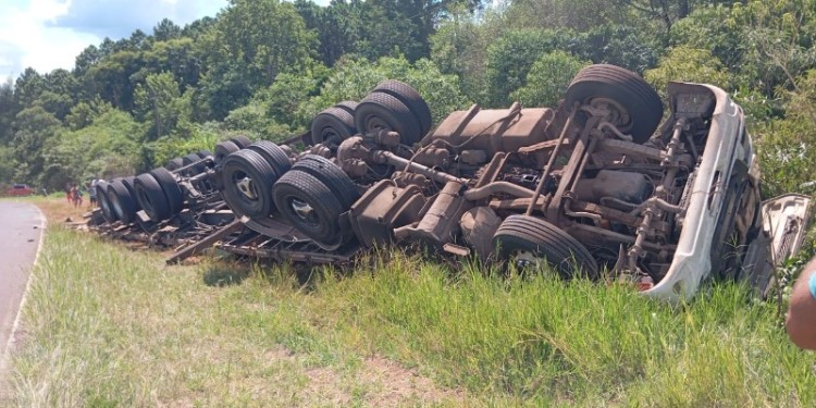 Un camionero de 35 años sufrió lesiones en el brazo derecho luego de que el vehículo que conducía se despistara y volcara en la banquina terrada de la Ruta Provincial N° 17, a la altura del kilómetro 50, cerca del acceso a la aldea Tekoa Arandú.