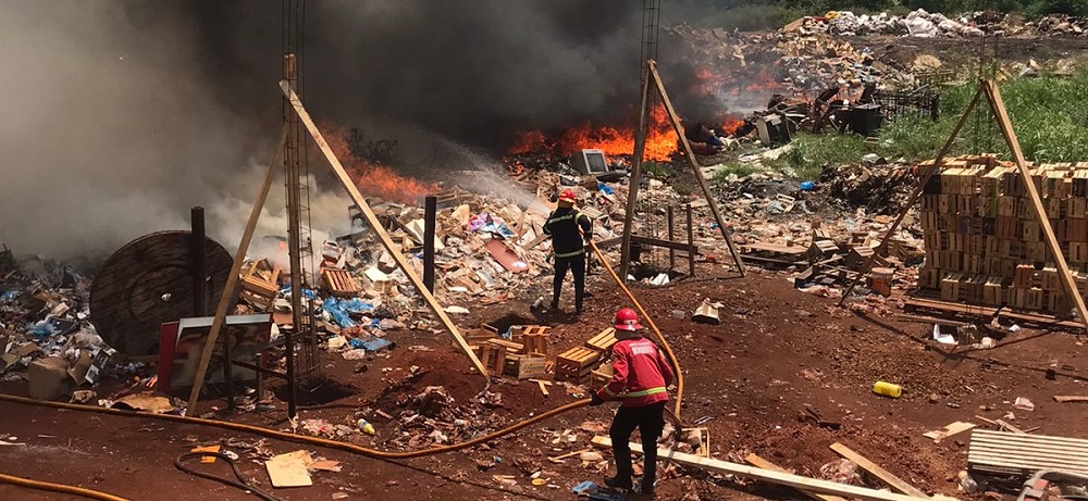 Este jueves en Oberá, Bomberos de la Policía de Misiones y Voluntarios trabajaron por varias horas para sofocar por completo un incendio en el basural del barrio Copisa.