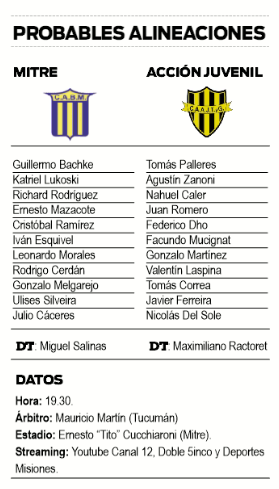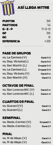 Mitre llega invicto, con números que son admirar en un torneo tan complicado como este. Es que, al cabo de 14 partidos disputados, ganó 11 de ellos y apenas tuvo 3 empates. No conoce derrotas y en su última serie-la final del Litoral Norte, despachó a 1º de Mayo de Formosa imponiéndose en los dos juegos: 3-1 en la ida y 3-2 en la revancha.
