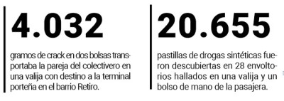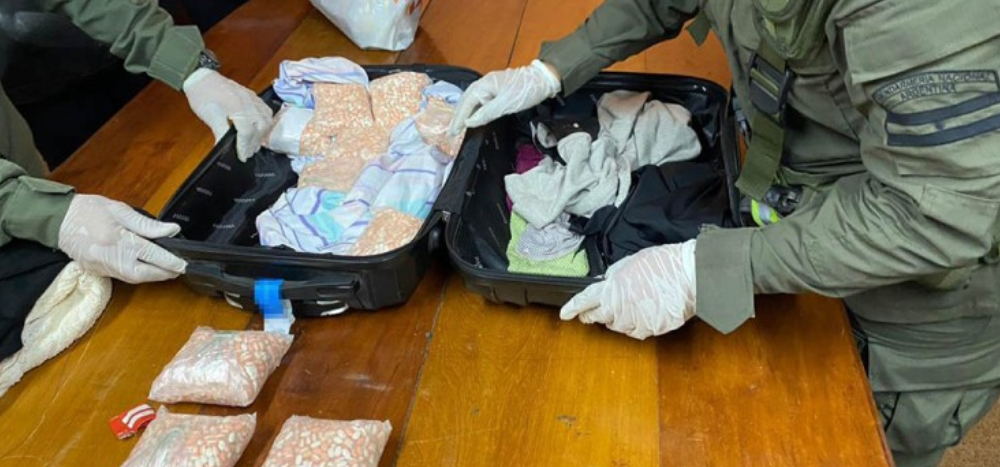 Todo fue secuestrado y llevado al escuadrón de GN de Paso de los Libres donde se discriminó del bolso 16 envoltorios transparentes con comprimidos de diferentes colores con inscripción en unas de sus caras la leyenda “Kit-Kat”. De la apertura de la valija se observaron doce envoltorios similares y dos bolsas transparentes con 4,032 kilogramos de crack.