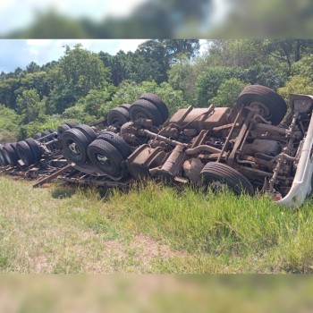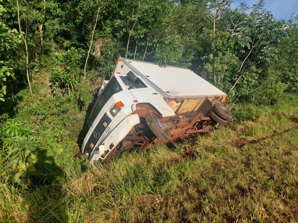 Este domingo por la tarde, un camión Mercedes Benz 710 volcó sobre su lateral derecho en el Paraje Cerro Siete, ubicado a la vera de la Ruta Nacional 101, en el tramo que conecta Bernardo de Irigoyen con San Antonio.