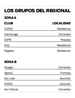En cuanto a la Zona B, Taragüy de Corrientes -último finalista- es cabeza de serie y estará en el grupo junto a Aguará de Formosa, San Patricio de Corrientes y los dos equipos paraguayos, San José y el Club Universitario de Rugby de Asunción (CURDA).