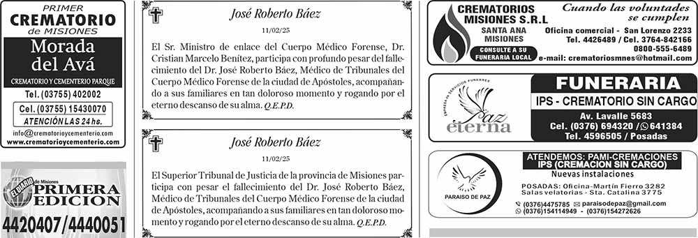 Fúnebres del Miércoles 12 de Febrero de 2025