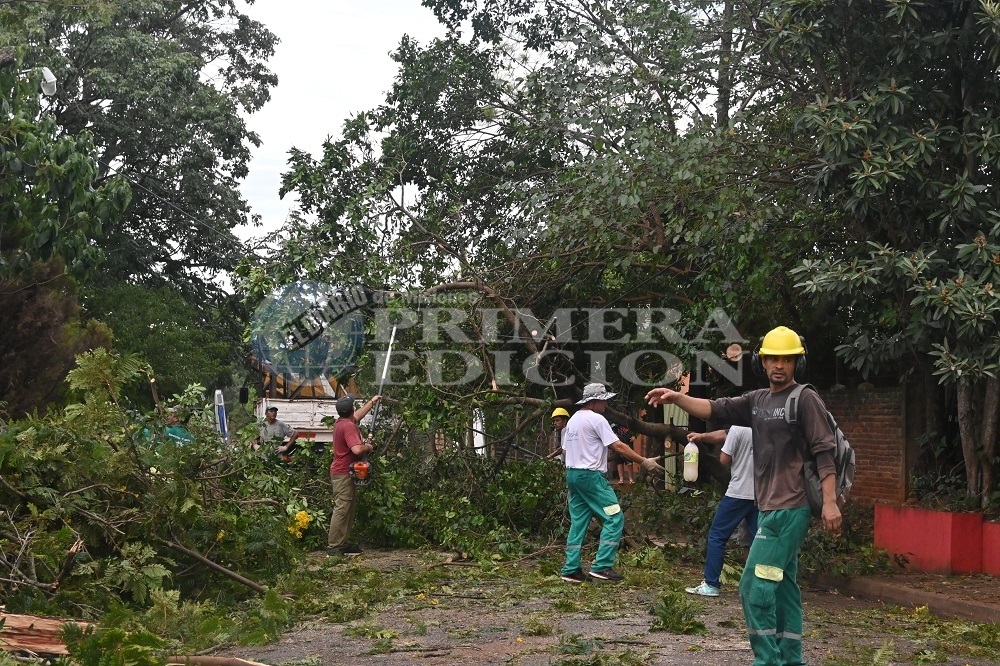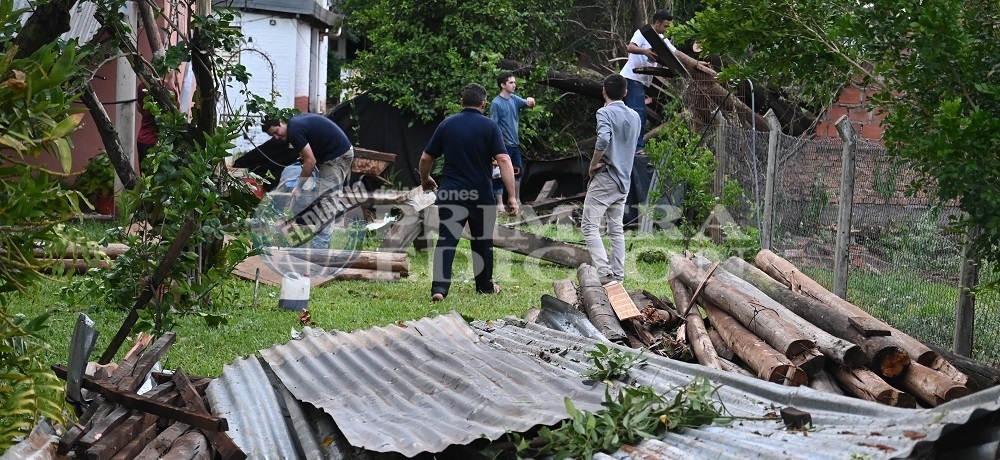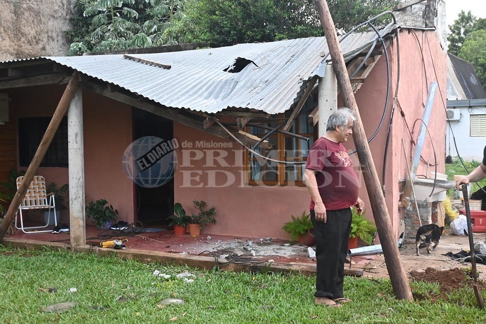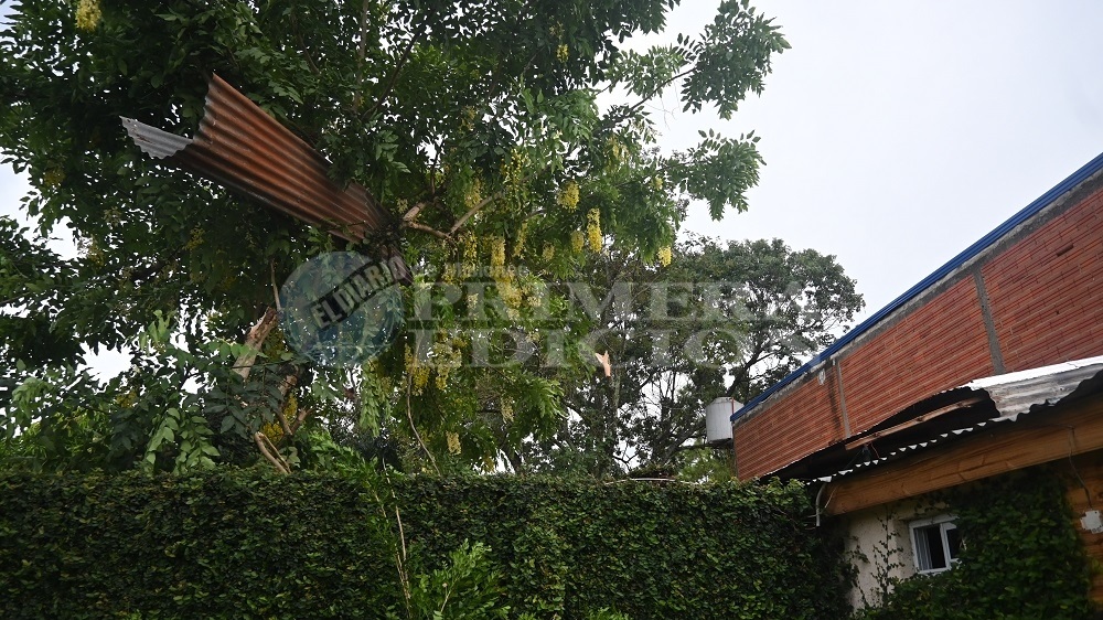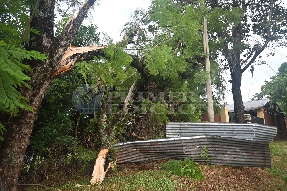 En plena siesta misionera, un breve pero intenso temporal de viento y agua azotó a una pequeña franja de la ciudad de Posadas, pero causó cuantiosos destrozos en árboles, casas, techos, postes, tendido eléctrico y mampostería de locales comerciales, entre otros daños.