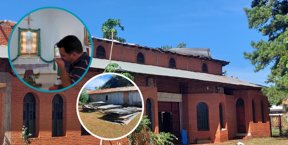 La Capilla Nuestra Señora de Guadalupe, ubicada en el límite entre los barrios Aeroclub y Latinoamérica de Posadas, sufrió graves daños en su techo tras el fuerte temporal que azotó la ciudad en la tarde de este martes. En apenas pocos minutos, el viento se llevó más de 60 chapas, dejando expuesta gran parte de la estructura. Los tirantes y el cielo raso quedaron al descubierto.
