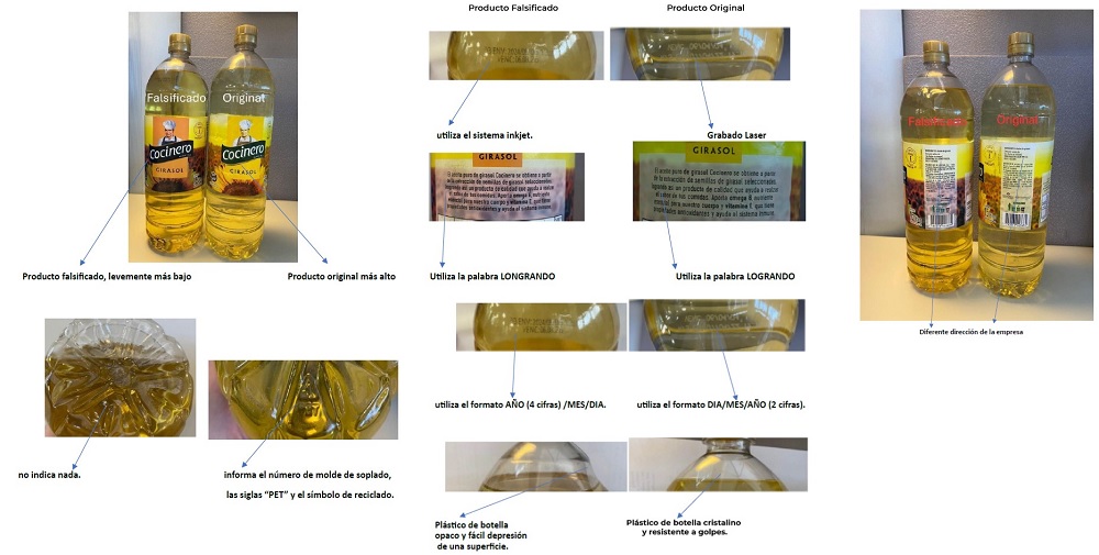 La propia empresa Molinos Río de la Plata enumeró las diferencias más notorias que identificó entre su producto original y el falsificado, entre ellas:
