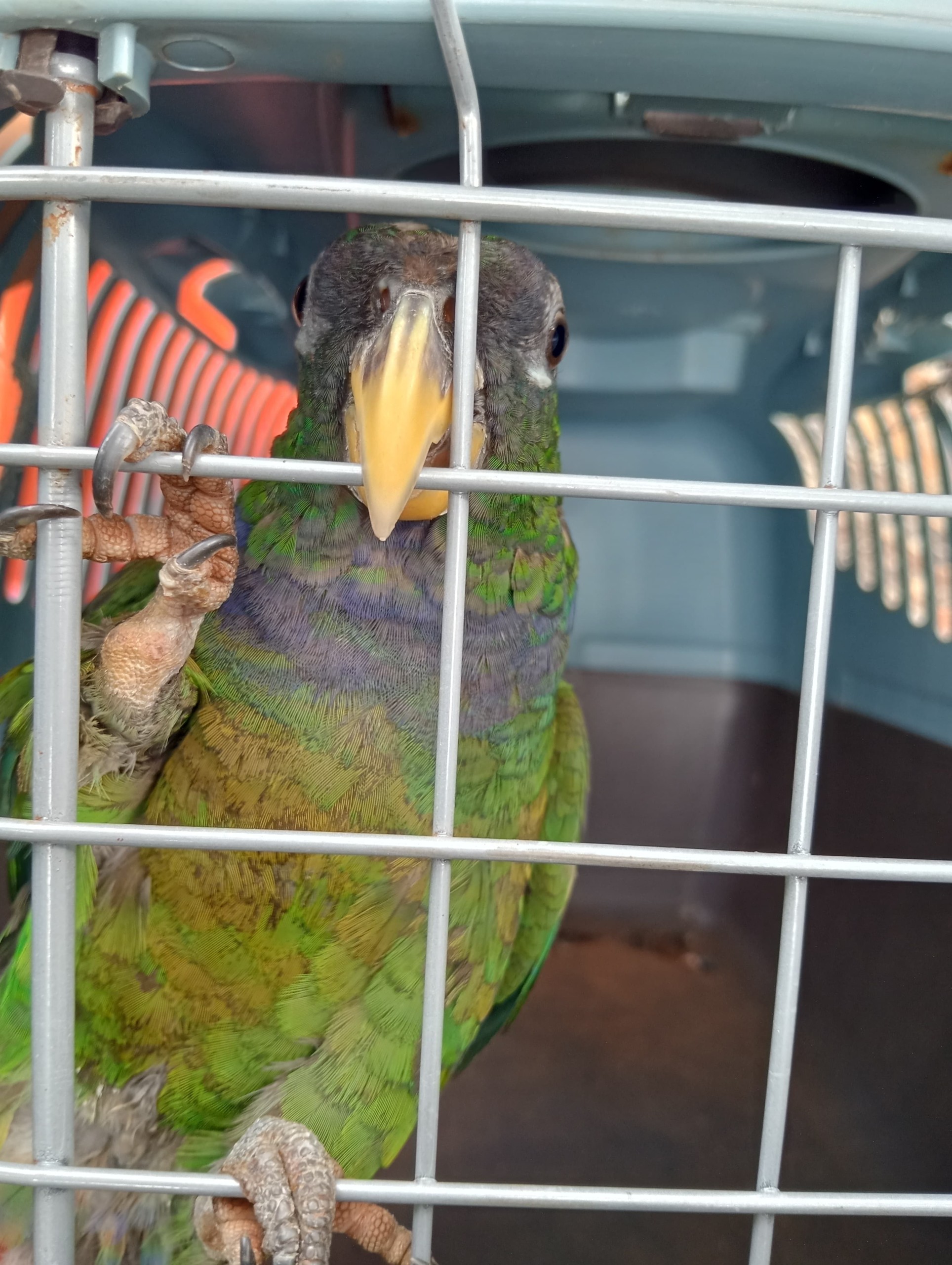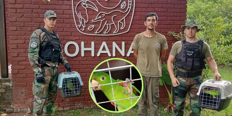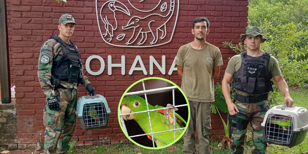 En un operativo realizado en la localidad de Campo Viera, la Policía logró rescatar dos aves silvestres que eran ofrecidas a la venta por 50 mil pesos a través de grupos de WhatsApp y otras redes sociales. Se trata de un loro maitaca juvenil (Pionus maximiliani) y un loro calancate ala roja (Psittacara leucophthalmus), especies protegidas que suelen ser capturadas ilegalmente para su comercialización.
