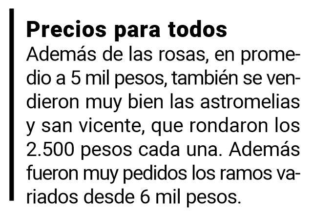 “Vendimos muchas rosas, habíamos pedido una mayor cantidad para tener en stock pero los proveedores a nivel país nos dijeron que había algo de faltante y no podían satisfacer la demanda no solamente nuestra sino de varias florerías”, decribió.
